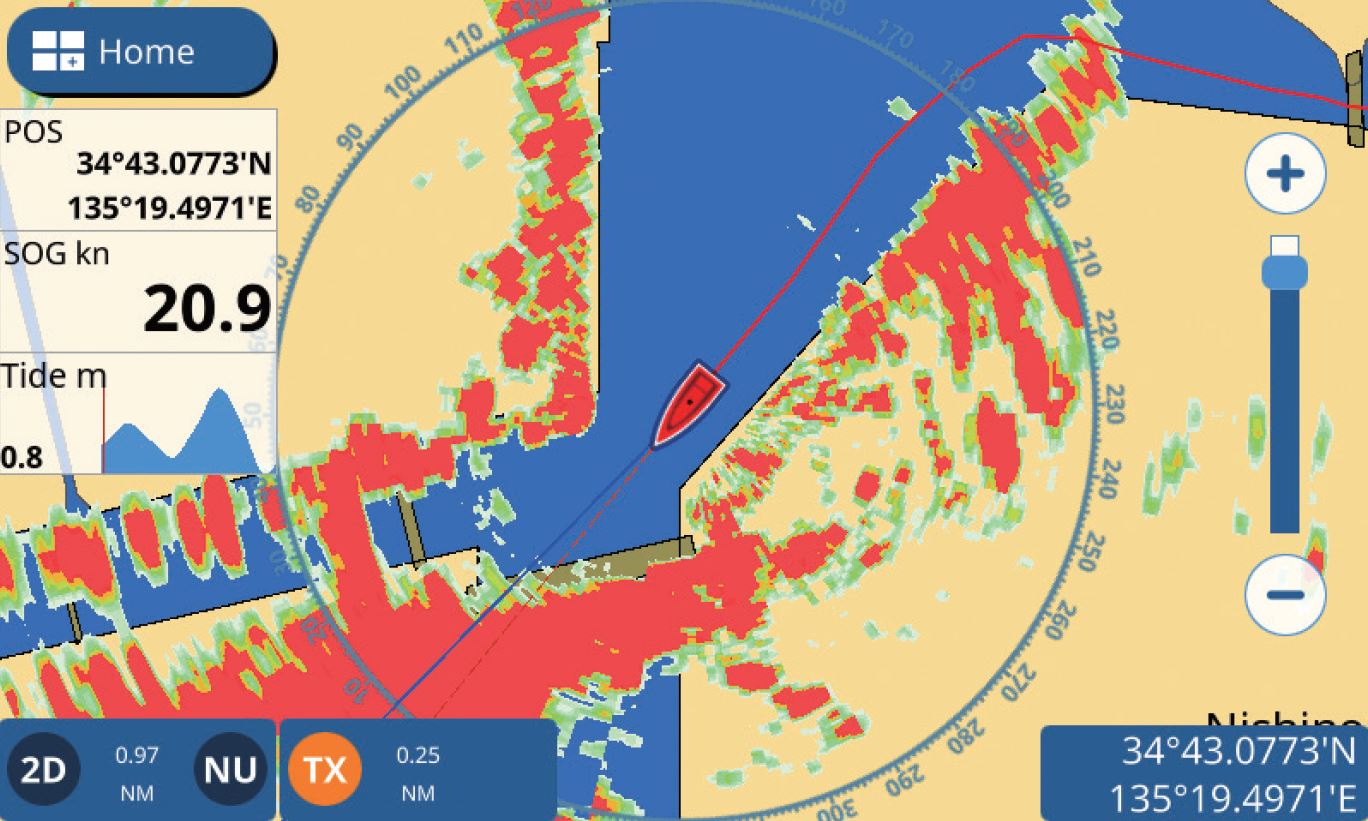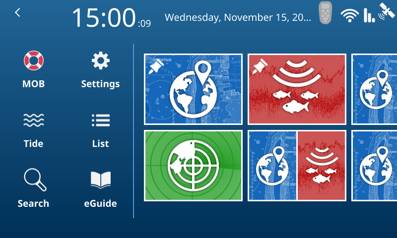 L’interfaccia grafica utente dei chart plotter GP1871F/1971F è molto semplice e intuitiva ed è basata sulla serie Furuno Navnet TZT2. Le modalità operative sono perfettamente personalizzabili con tre finestre e 5 tipi delle schermate: Plotter cartografico, Ecoscandaglio, Radar, Dati di navigazione e Autopilota. La funzione “Edge-Swipe” garantisce all’utente un facile accesso ai Menù laterali a scomparsa attivabili dai quattro bordi dello schermo.