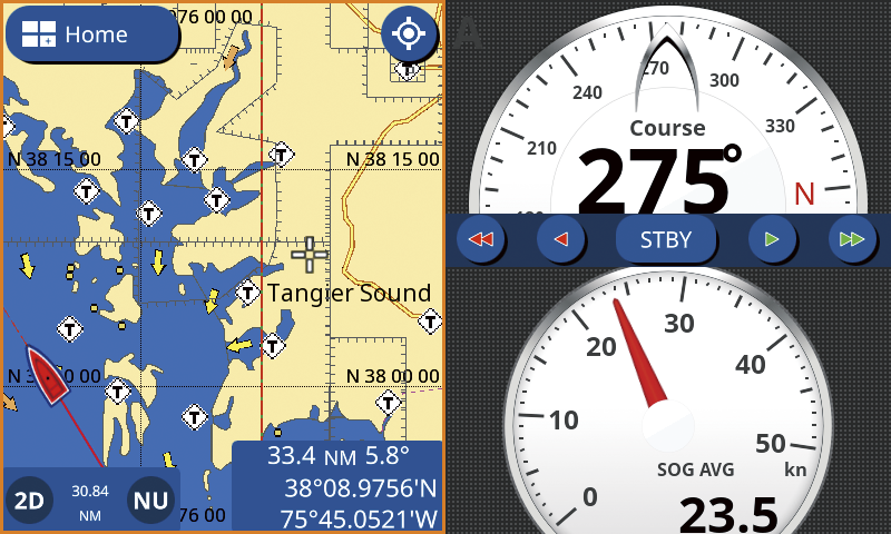L’interfaccia grafica utente dei chart plotter GP1871F/1971F è molto semplice e intuitiva ed è basata sulla serie Furuno Navnet TZT2. Le modalità operative sono perfettamente personalizzabili con tre finestre e 5 tipi delle schermate: Plotter cartografico, Ecoscandaglio, Radar, Dati di navigazione e Autopilota. La funzione “Edge-Swipe” garantisce all’utente un facile accesso ai Menù laterali a scomparsa attivabili dai quattro bordi dello schermo.
